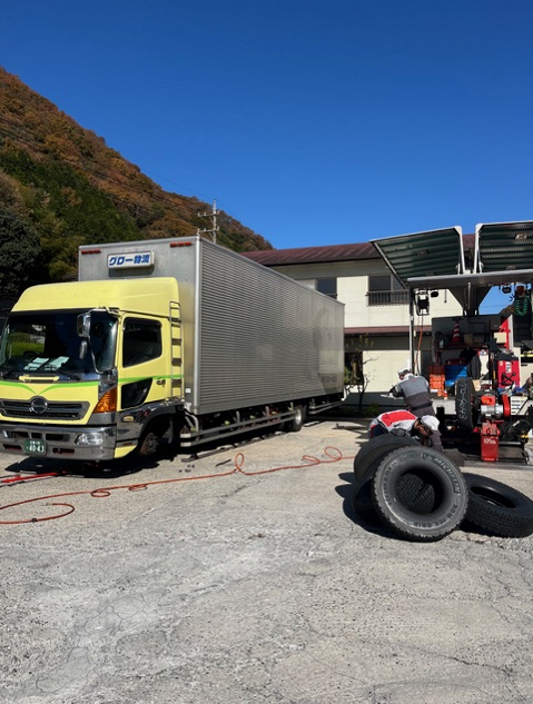 4トンロング車(9.6m)で広島から三重県鈴鹿市までの運行をしています。荷物は軽いウレタンの台車とロールものを運んでいます。